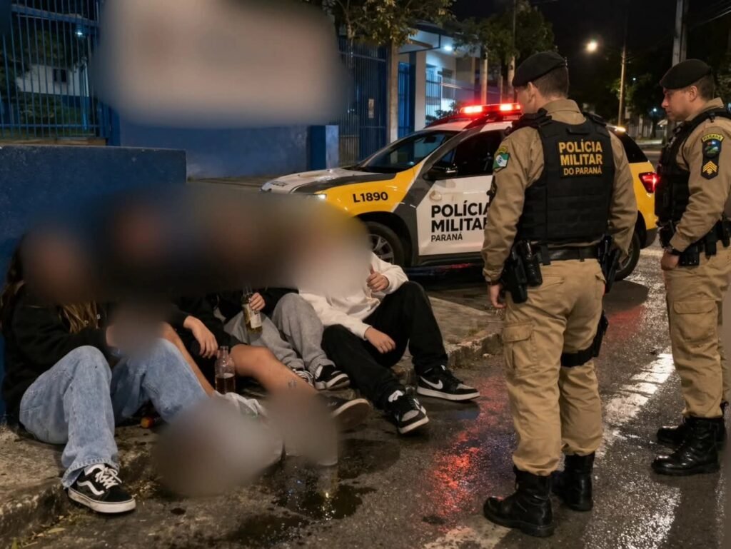 Três adolescentes, de 11, 13 e 14 anos, foram flagrados embriagados após comprarem e consumirem bebidas alcoólicas antes de irem para um colégio no distrito de Palmeirinha, em Guarapuava.