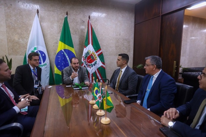 Ontem, Paulo Martins recebeu uma delegação paraguaia para discutir inovação, planejamento urbano e saneamento com o presidente da Empresa de Serviços Sanitários do Paraguai (Essap), Luis Fernando Bernal.