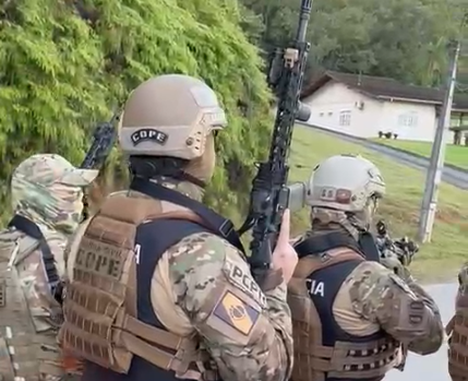 Após tomar conhecimento das investigações, o homem fugiu do presídio de Itajaí (SC). Na operação desta terça-feira, ele foi localizado e recapturado pela PCPR, com o apoio da PCSC