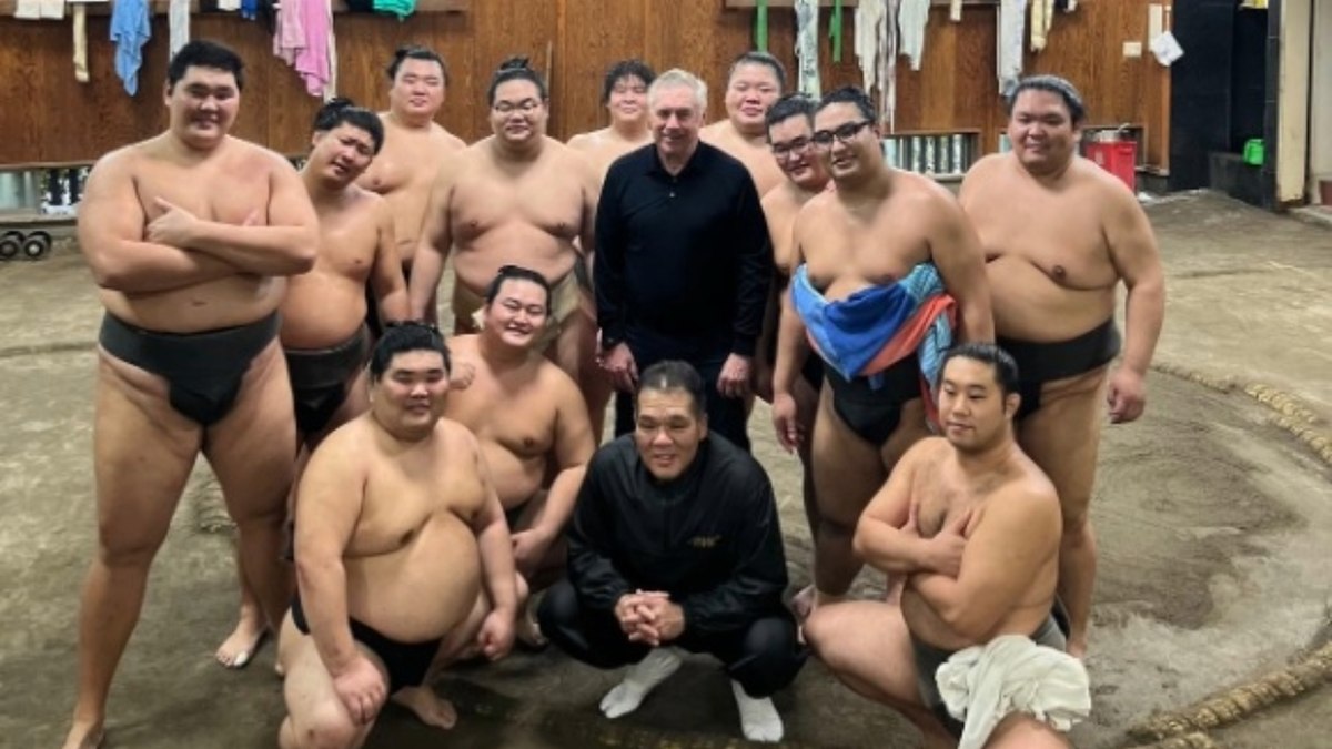 “Como um entusiasta do esporte, fiquei honrado por ter sido convidado para vir ao estábulo de Sumô. O coração da cultura ancestral japonesa em um esporte”, declarou Ancelotti em sua postagem no Instagram. A legenda acompanha fotos do treinador posando ao lado de imponentes lutadores de sumô, evidenciando a singularidade do encontro.