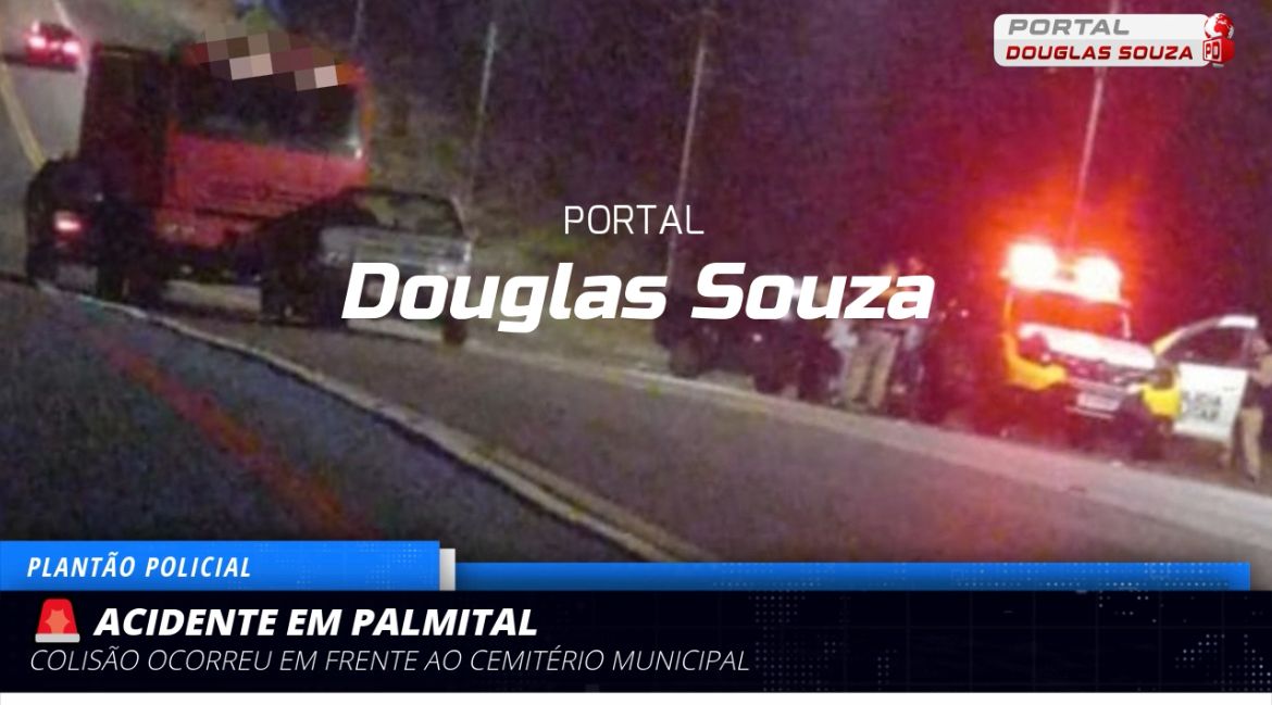 Um acidente de trânsito envolvendo um Fiat Uno e um caminhão de leite movimentou a noite desta segunda-feira, 3 de novembro, em Palmital. A colisão ocorreu em frente ao Cemitério Municipal, chamando a atenção de moradores da região.