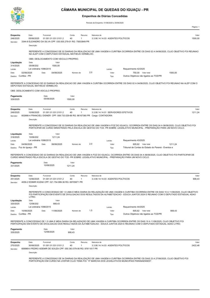 O cenário político na Câmara Municipal de Quedas do Iguaçu (PR) atualmente está sendo marcado por uma intensa disputa que transcende o debate legislativo, concentrando-se em acusações mútuas sobre o uso de recursos públicos, especialmente as diárias de viagem.