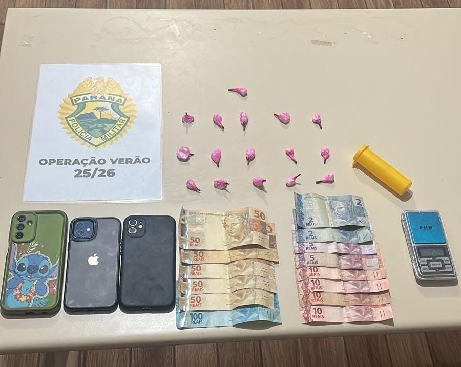 Na sexta-feira (2), equipes da Polícia Militar do Paraná patrulharam o bairro Canoas, em Pontal do Paraná, quando a ação de um homem despertou suspeita. Ao perceber a presença policial, ele correu para dentro do local e foi acompanhado pelas equipes. Durante a abordagem, foram encontradas várias porções de cocaína com ele. As buscas no local revelaram uma balança de precisão e dinheiro em espécie. Um homem e uma mulher foram encaminhados à Delegacia de Polícia Civil em Pontal do Paraná para as providências cabíveis. Foram apreendidos R$ 404, 16 buchas de cocaína, três aparelhos celulares e uma balança de precisão. Os resultados fazem parte das ações da Operação Verão Maior Paraná, que reforça o policiamento ostensivo e o enfrentamento ao crime durante a temporada de verão.