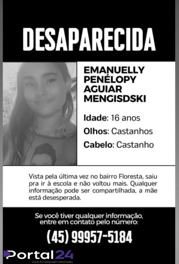 Familiares e amigos utilizam as redes sociais para divulgar o desaparecimento e ampliar as buscas. Qualquer informação que possa ajudar a encontrar Emanuélly pode ser repassada pelo telefone (45) 99957-5184.