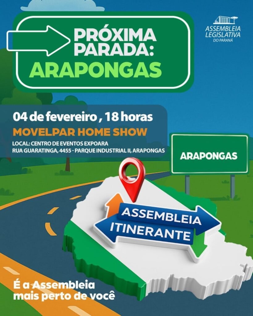 Arapongas será sede da primeira edição da Assembleia Itinerante de 2026, que ocorrerá em 4 de fevereiro, às 18h, durante a Movelpar Home Show, no Centro de Eventos Expoara.