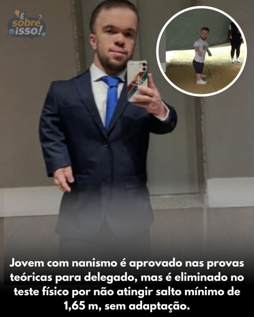 Segundo ele, apesar de ter sido aprovado nas etapas teóricas do certame, acabou eliminado por não alcançar a marca mínima de 1,65 metro no salto horizontal, exigida pela prova física.