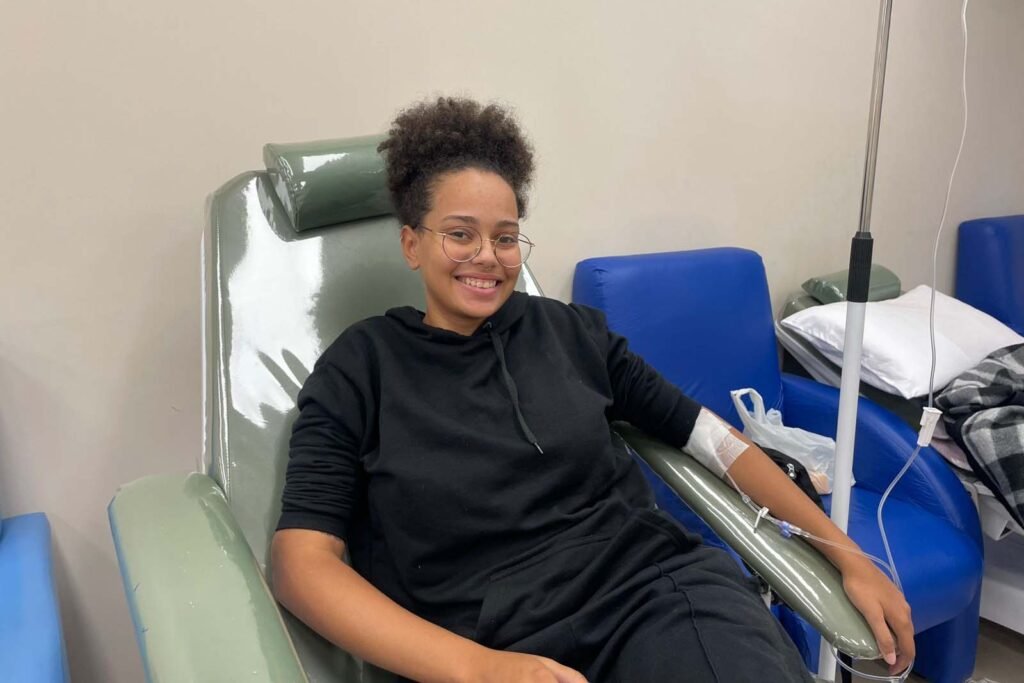 A estudante de Pedagogia Ana Beatriz Saturnino, de 19 anos, é portadora de anemia falciforme. A doença foi descoberta por meio da triagem neonatal, conhecida como Teste do Pezinho. “As transfusões sempre foram recorrentes na minha vida. A primeira de que me lembro foi quando eu tinha sete anos, quando precisei fazer uma cirurgia para a retirada das amígdalas. Realizar a transfusão sempre me ajudou a ter uma qualidade de vida muito boa”, diz.