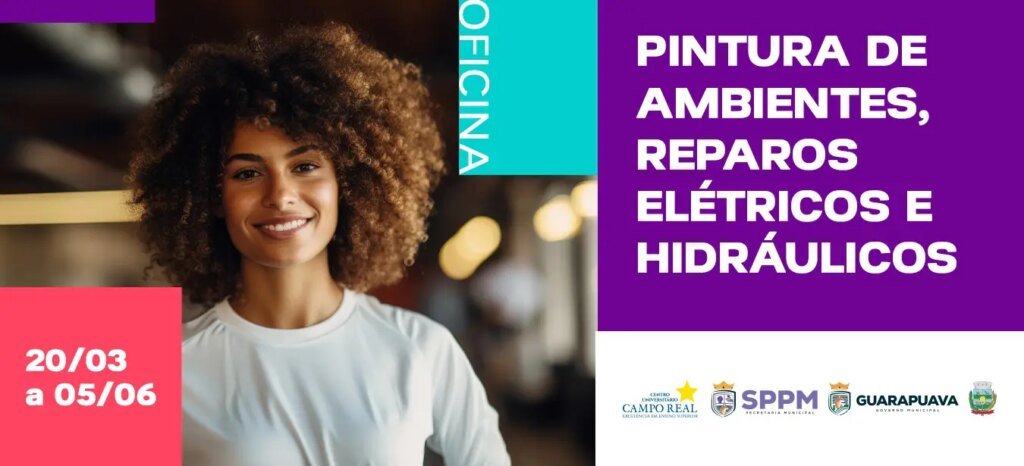 A Prefeitura de Guarapuava, por meio da Secretaria de Políticas Públicas para Mulheres, está com inscrições abertas para a Oficina de Pintura de Ambientes, Reparos Elétricos e Hidráulicos. A capacitação integra as ações alusivas ao Mês da Mulher.