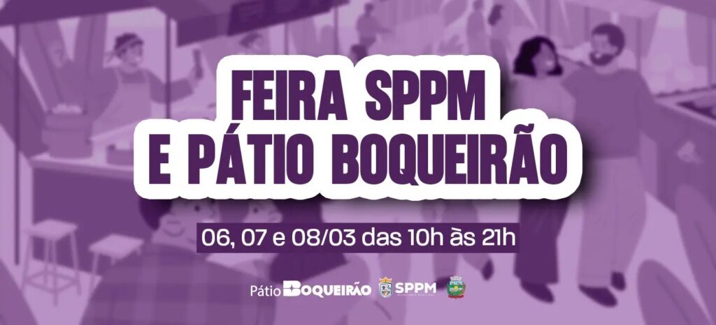 A Prefeitura de Guarapuava, por meio da Secretaria de Políticas Públicas para as Mulheres, em parceria com o Pátio Boqueirão, realiza neste final de semana a segunda edição da Feira Mensal. A programação começa na sexta-feira (6 de março de 2026) e segue no sábado (07) e domingo (08), das 10h às 21h, na Rua Guaíra, 5555 (antigo Compre Mais), com acesso pela entrada principal do Pátio Boqueirão.