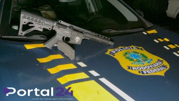 Um fuzil calibre 5.56 foi apreendido pela Polícia Rodoviária Federal durante uma abordagem de rotina na BR-277, em Santa Tereza do Oeste, nesta sexta-feira (20).