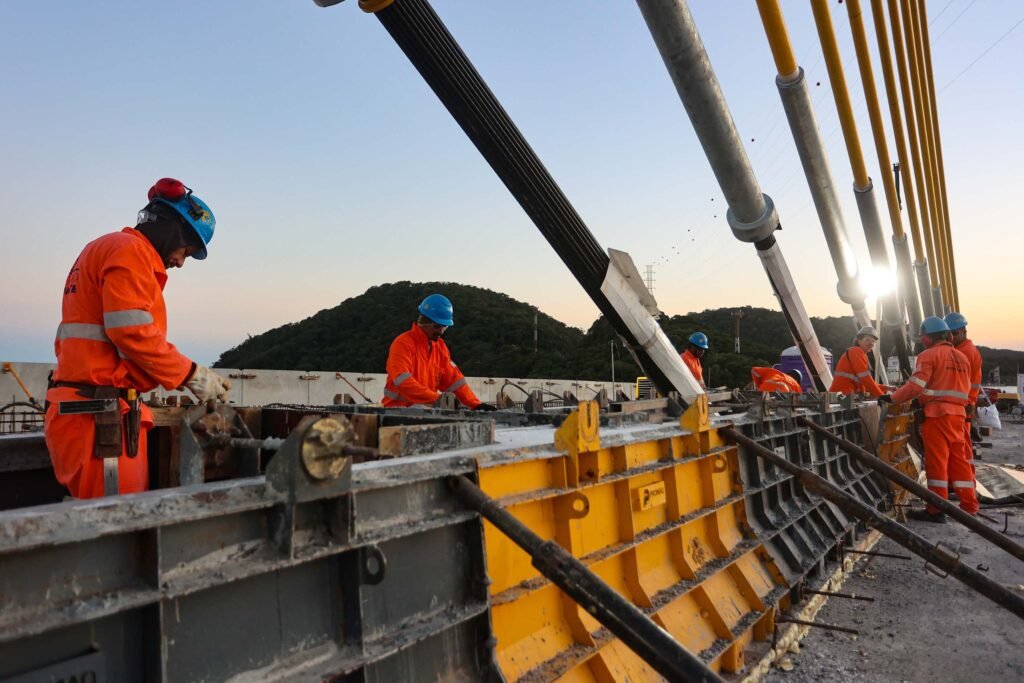 A construção da Ponte de Guaratuba alcançou um dos marcos mais importantes desde o início das obras: o trecho estaiado chegou aos 320 metros totais executados com o fechamento do vão central tendo sido realizado na semana passada. O avanço coloca a obra na reta final de uma das etapas mais complexas da engenharia sobre a Baía de Guaratuba.
