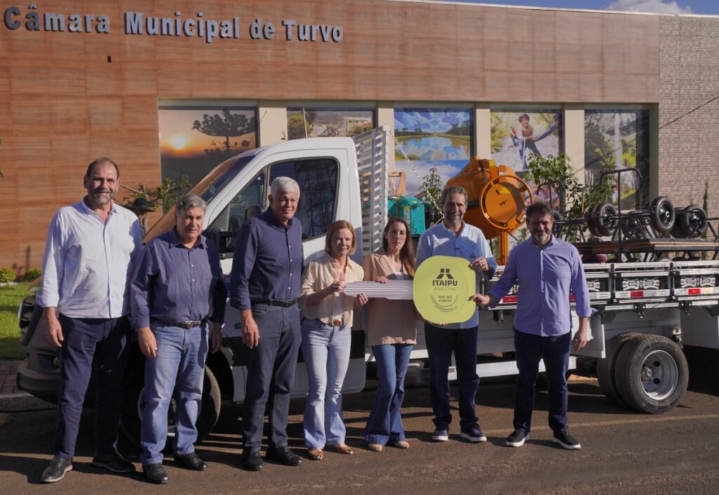 A Itaipu Binacional realizou nessa sexta-feira (10 de abril de 2026), em Turvo, a entrega de um caminhão que irá atender a agricultores familiares da região central do estado. A entrega faz parte de um convênio mais amplo, com investimentos de R$ 4,1 milhões da empresa, e que inclui ações de capacitação, implantação de viveiros de mudas e apoio técnico e jurídico para regularizações fundiária e ambiental.