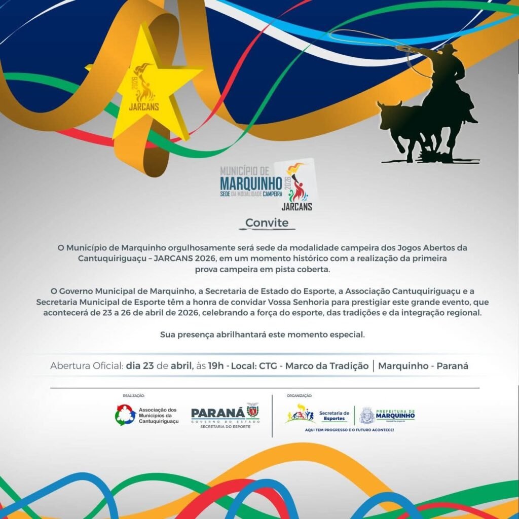 O município tem a honra de sediar a modalidade campeira dos JARCANS 2026, em um evento histórico que contará com a realização da primeira prova campeira em pista coberta.
