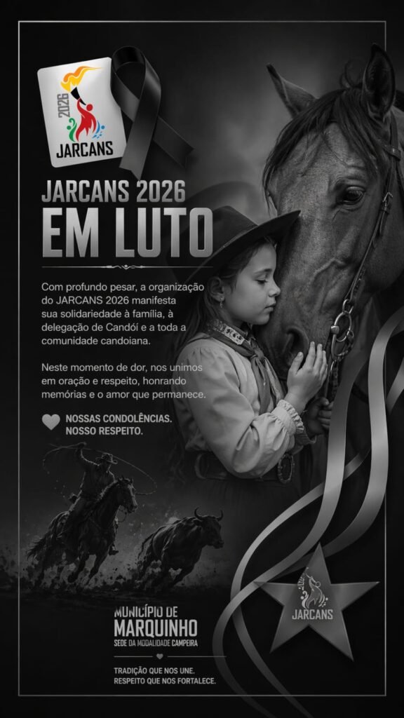 A organização do JARCANS 2026 informou o cancelamento da etapa da modalidade campeira, que havia sido aberta nesta data, em respeito ao luto pela morte de uma criança integrante da delegação do município de Candói.