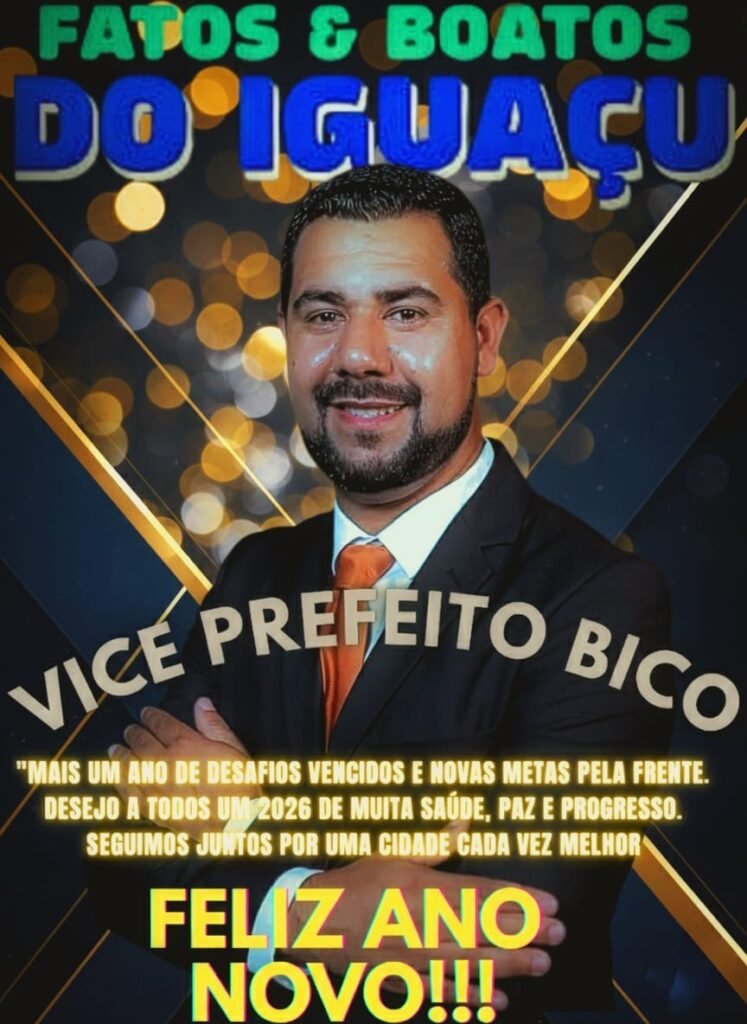 O vice-prefeito de Laranjeiras do Sul, Ademílson Moraes, o Bico, deseja a todas as famílias um Feliz e próspero Ano Novo 2026, com muita saúde, paz, fé e esperança renovada