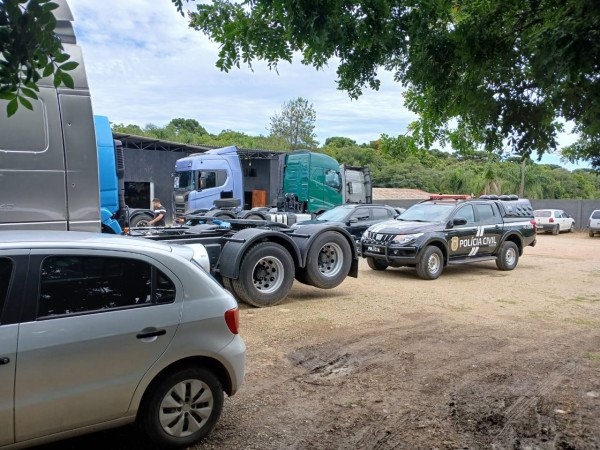Polícia Civil do Paraná cumpriu mandados de busca e apreensão em empresas que comercializam travas de caminhão em São José dos Pinhais, na Região Metropolitana de Curitiba, nesta terça-feira (13).