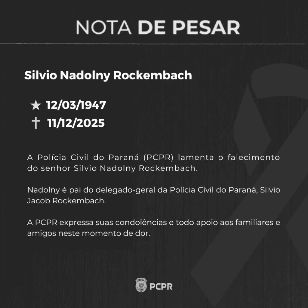 A Polícia Civil do Paraná (PCPR) lamenta o falecimento do senhor Silvio Nadolny Rockembach.
