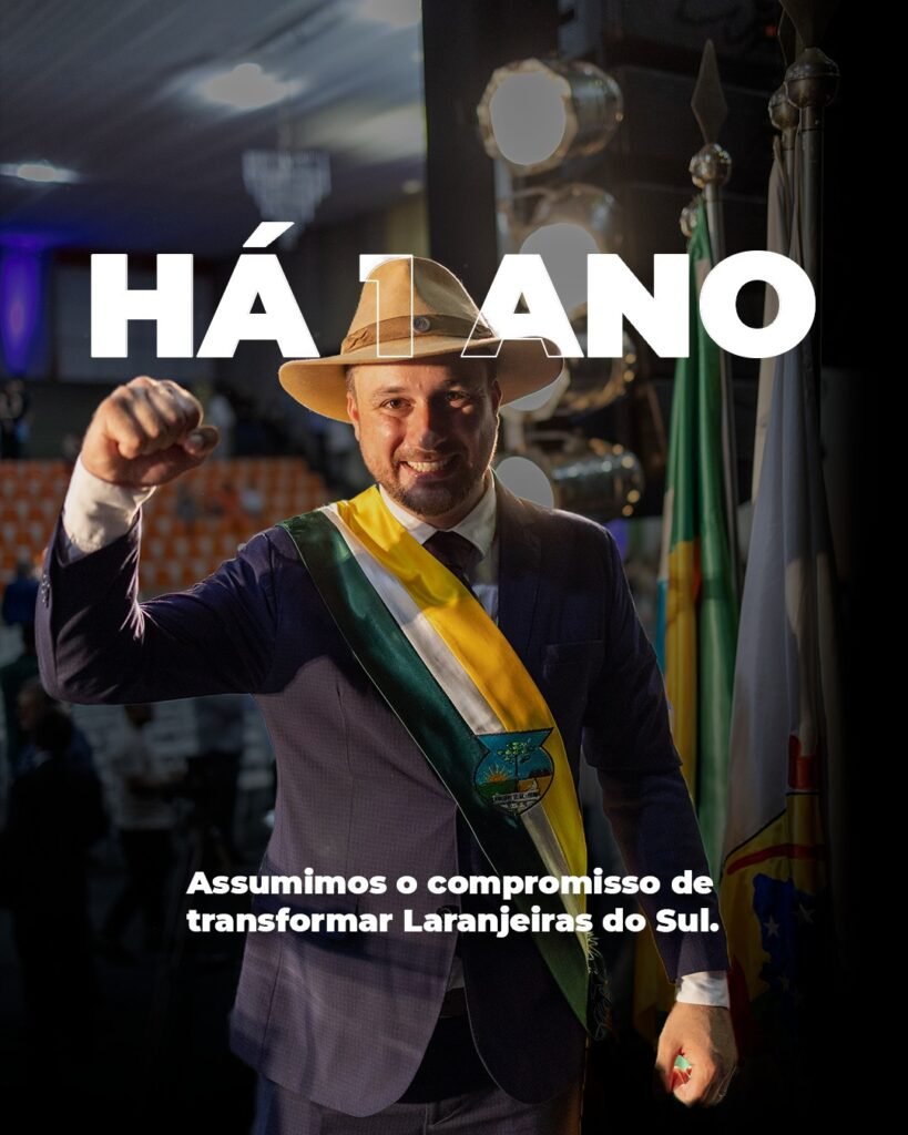 Hoje celebro, junto com vocês, 1 ano à frente da Prefeitura de Laranjeiras do Sul. Um ano de muito trabalho, presença, decisões difíceis e conquistas importantes para a nossa cidade. 💚