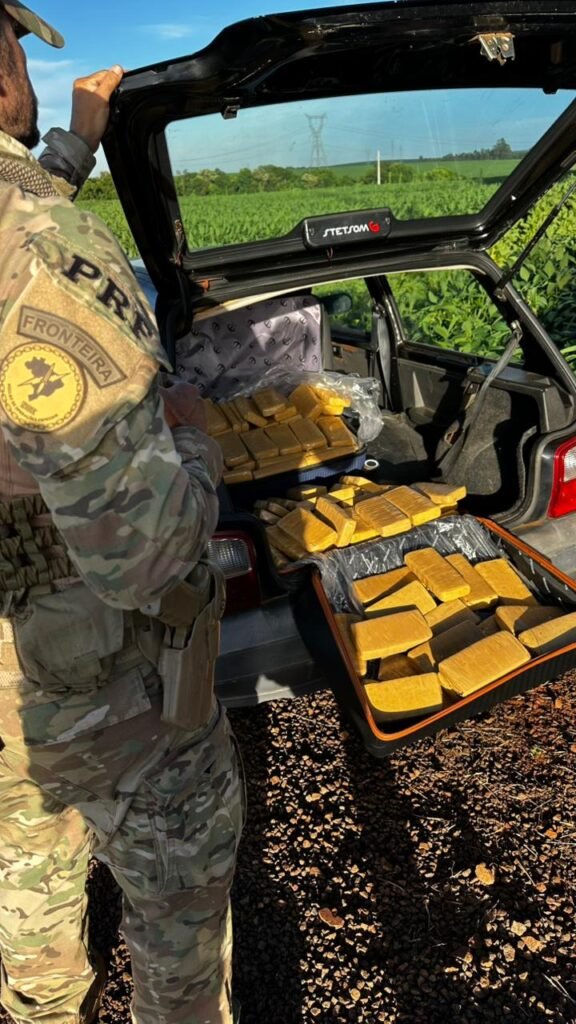 O condutor ainda não foi localizado, mas buscas continuam. Durante a vistoria, os policiais encontraram duas malas contendo 90 kg de maconha.