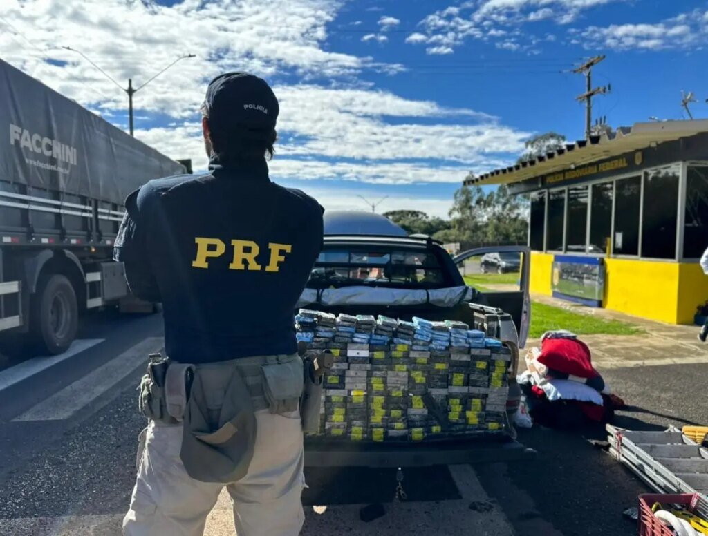 A Polícia Rodoviária Federal (PRF) apreendeu, na manhã desta segunda-feira (27 de abril de 2026), por volta das 9h, uma carga milionária de iPhones escondida em uma Fiat Strada, durante fiscalização na BR-277, em Guarapuava.