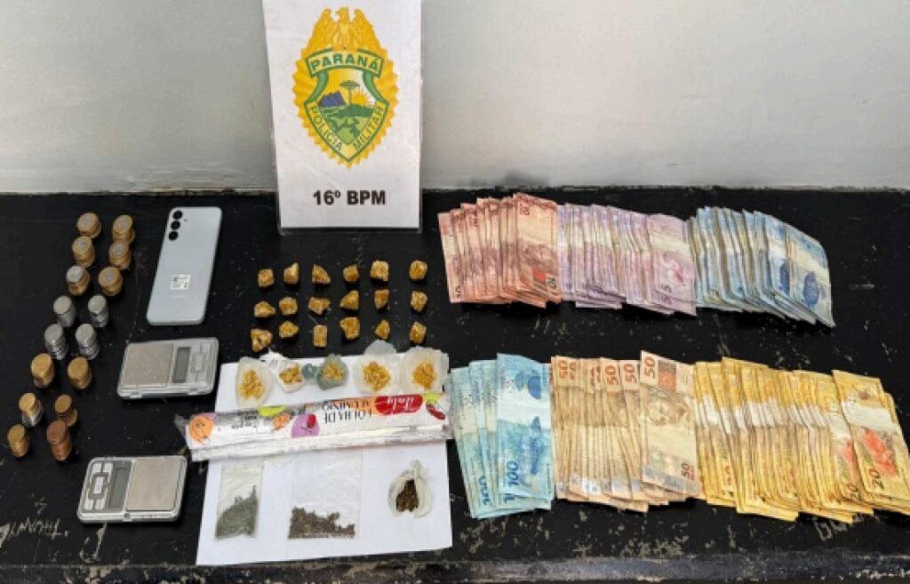 De acordo com informações do 16º Batalhão da Polícia Militar, a equipe realizava patrulhamento quando recebeu uma denúncia anônima informando que um homem estaria comercializando entorpecentes na região e que havia acabado de receber uma nova remessa de drogas.