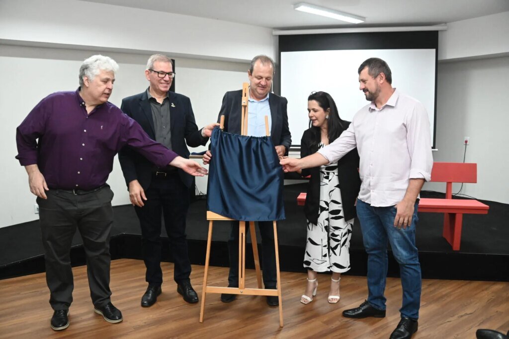 Também fruto do termo de execução descentralizada entre a Seti e a Unicentro, a Sala Conceito do Bloco R teve sua abertura oficial. O espaço, equipado com recursos tecnológicos e destinado ao uso pedagógico, deve atender eventos institucionais de forma provisória. “Ainda no Bloco R, temos a entrega da Sala de Defesas do Câmpus Santa Cruz. A sala é equipada com condições para que as defesas dos nossos programas de pós-graduação possam acontecer em um ambiente próprio e bastante aconchegante para isso”, acrescentou a diretora do Câmpus Santa Cruz, Roseli Machado.